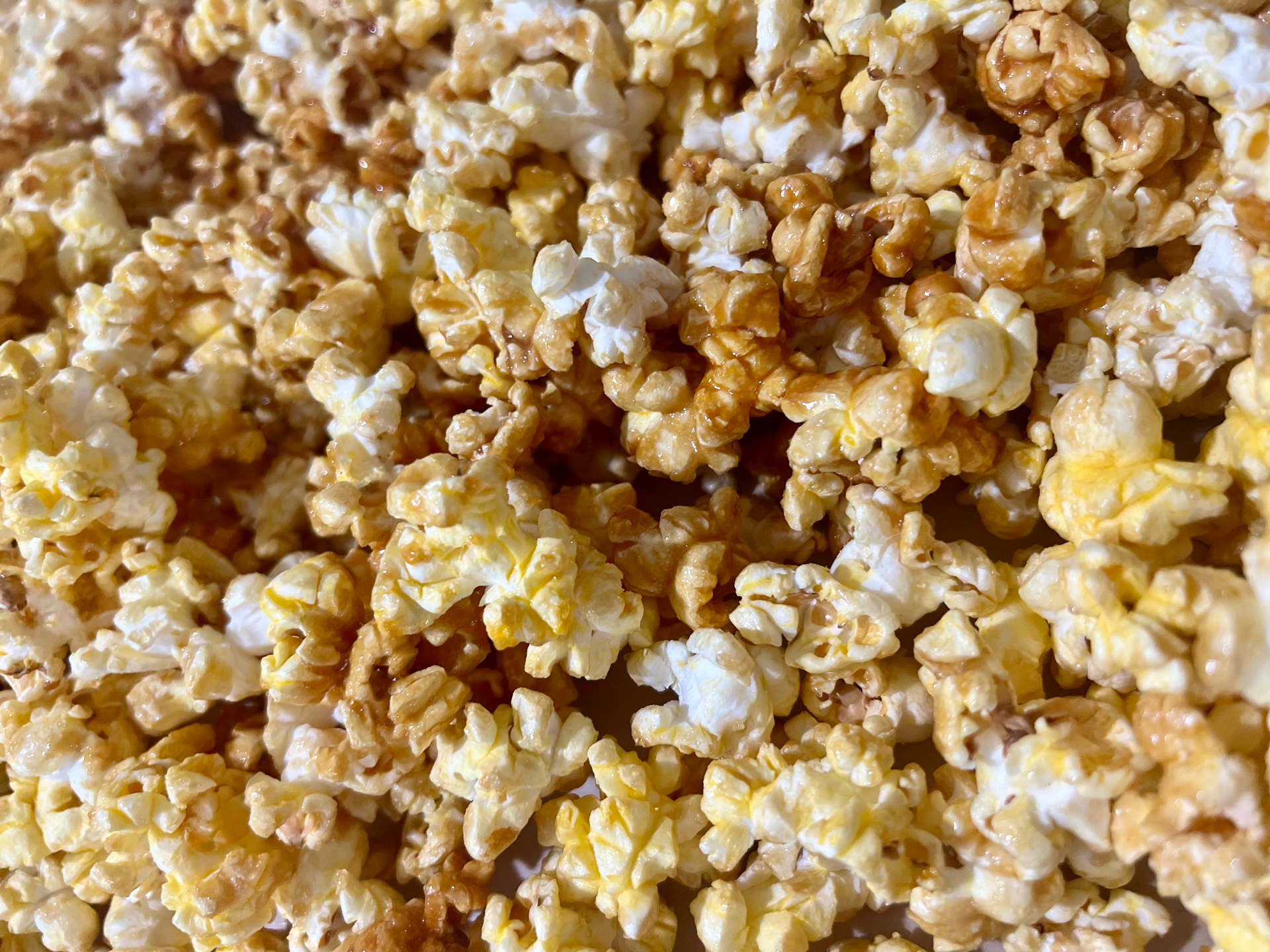 Sticky-sweet caramel corn that crackles like leaves and disappears faster than your willpower.