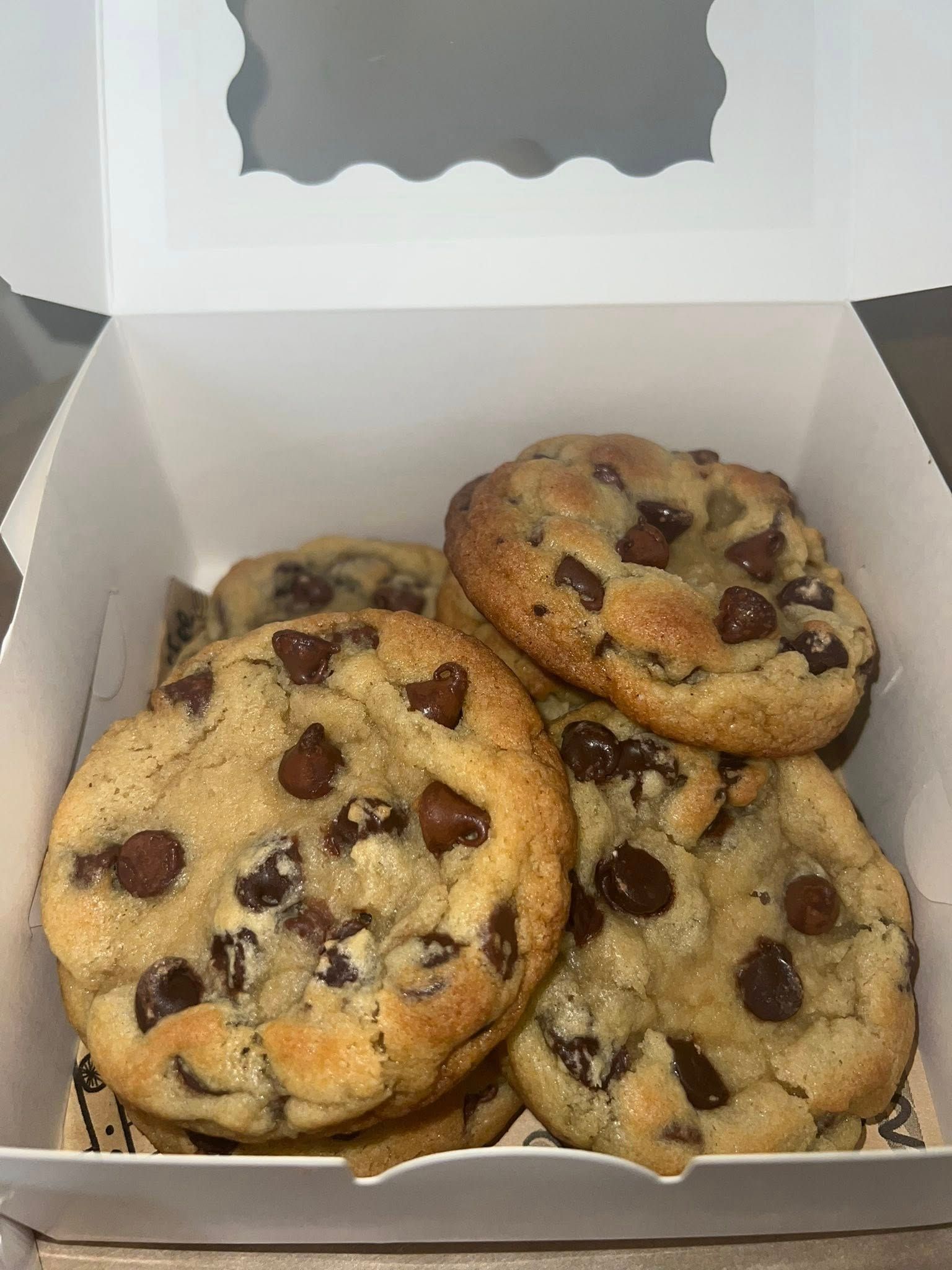 Brown butter base, rich chocolate chunks, and just enough salt to make you emotionally uncomfortable. He’s soft inside, snarky outside, and secretly your favorite.
